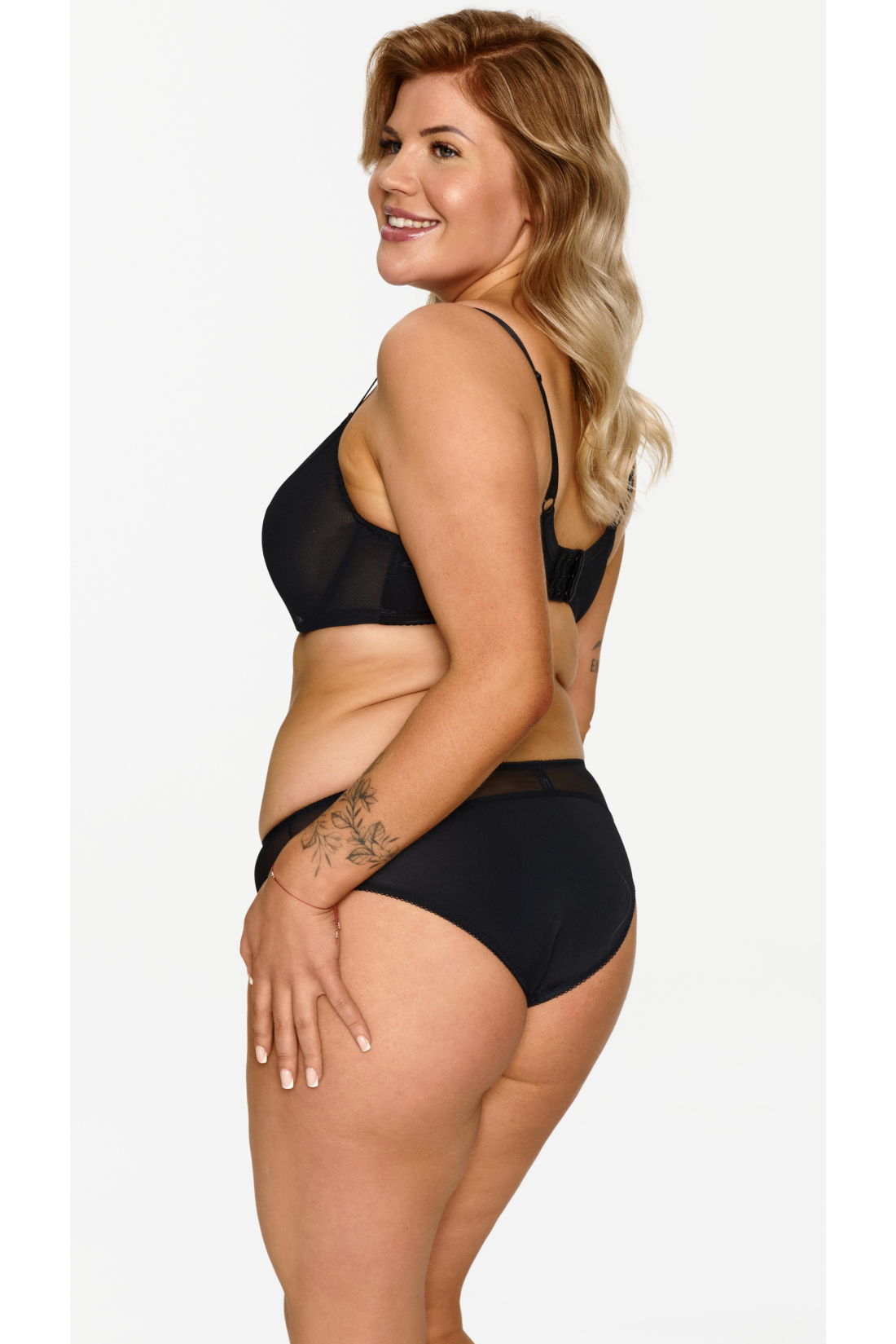 Figi z wyższym stanem, zachowane w klasycznej czerni, wykonane z połączenia mikrofibry i siatki.