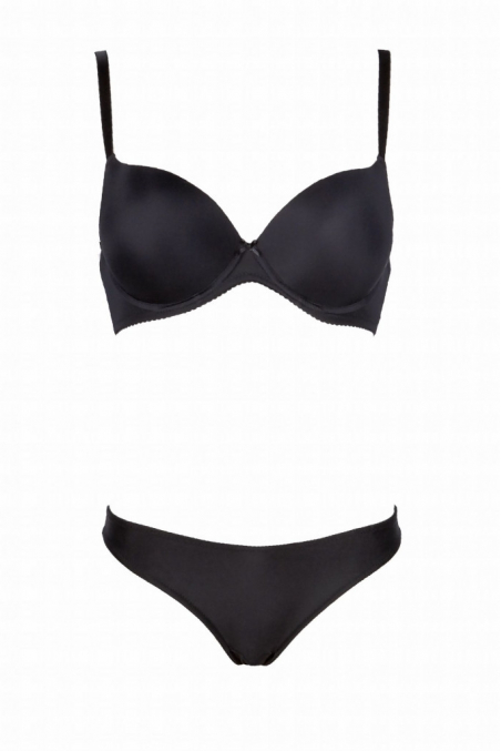 Biustonosz z kolekcji wiosna lato zachwycający swą prostotą. Czarny, elegancki biustonosz z profilowanymi miseczkami które znakomicie podtrzymują i stabilizują biust. Krój biustonosza zbiera piersi z boków i nadaje im krągły kształt, akcentując linię dekoltu. Między miseczkami delikatna kokardka dodająca uroku całości. Ramiączka nie odpinane.