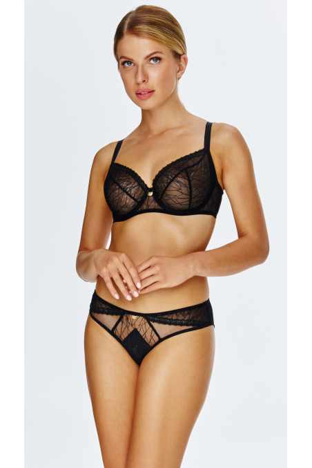 Podkreśl swoją kobiecość dzięki temu wyjątkowemu stanikowi, który łączy subtelność koronki z nowoczesnym designem. Biustonosz o miękkich, transparentnych miseczkach wykonanych z delikatnej siateczki i ozdobnej koronki zapewnia wygodę oraz efektowny wygląd.