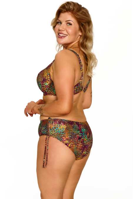 Stylowy kostium kąpielowy zaprojektowany z myślą o kobietach z większym biustem, które cenią sobie wygodę i idealne dopasowanie. Miękki biustonosz na fiszbinach doskonale podtrzymuje i modeluje biust, zapewniając naturalny wygląd oraz komfort noszenia.